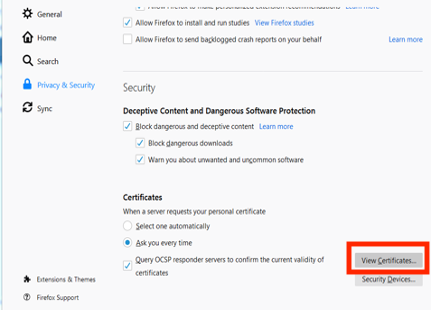 Please follow the steps below to install the security certificate on the Mozilla Firefox browser: