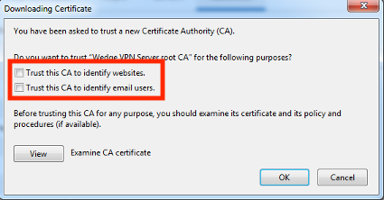 After you have installed the WedgeARP™ security certificate provided by Wedge Networks and have configured your VPN access you may need to follow this additional step to ensure that you can browse securely. If you are using the Mozilla Firefox browser, because it does not use the Microsoft Certificate key store, you will need to install the Wedge Security certificate separately.
