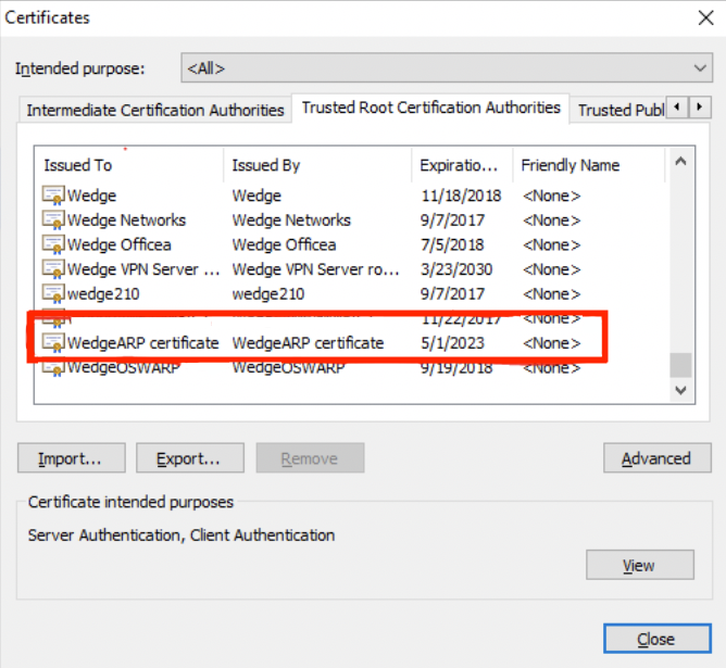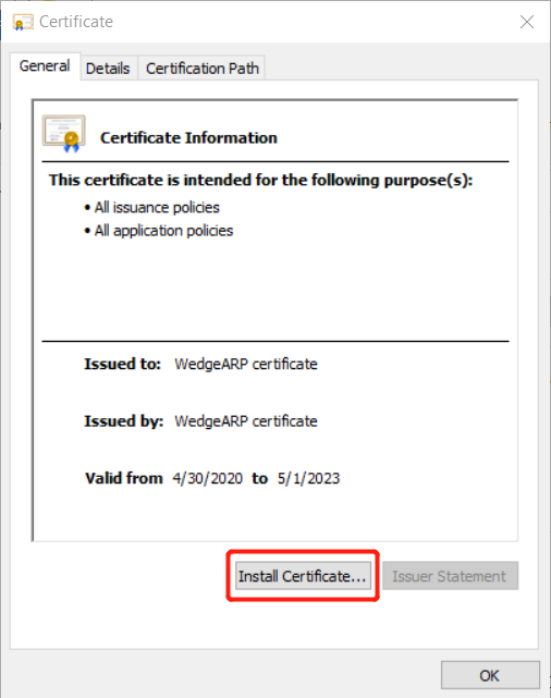 15. Scroll down until you see the WedgeARP Certificate for verification.