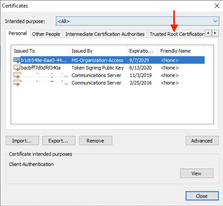 13. Click on the "Trusted Root Certification Authorities" tab.