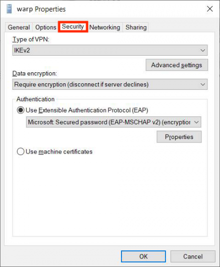 21. Next, navigate to the Security tab. Ensure that the settings on this tab are the following: