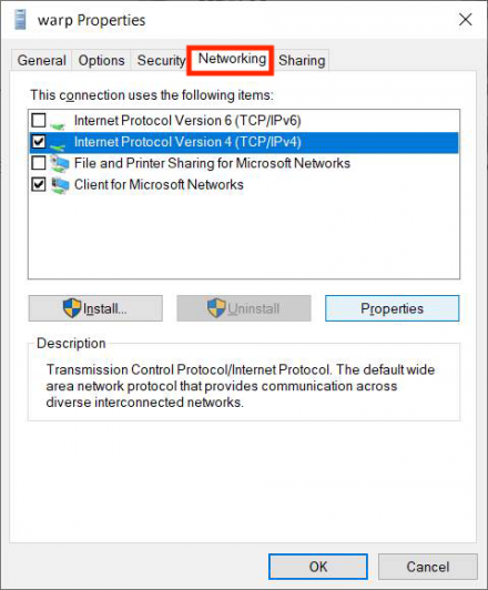 22. Then, on the Networking tab, enter the Properties section for Internet Protocol Version 4 (TCIP/IPv4).