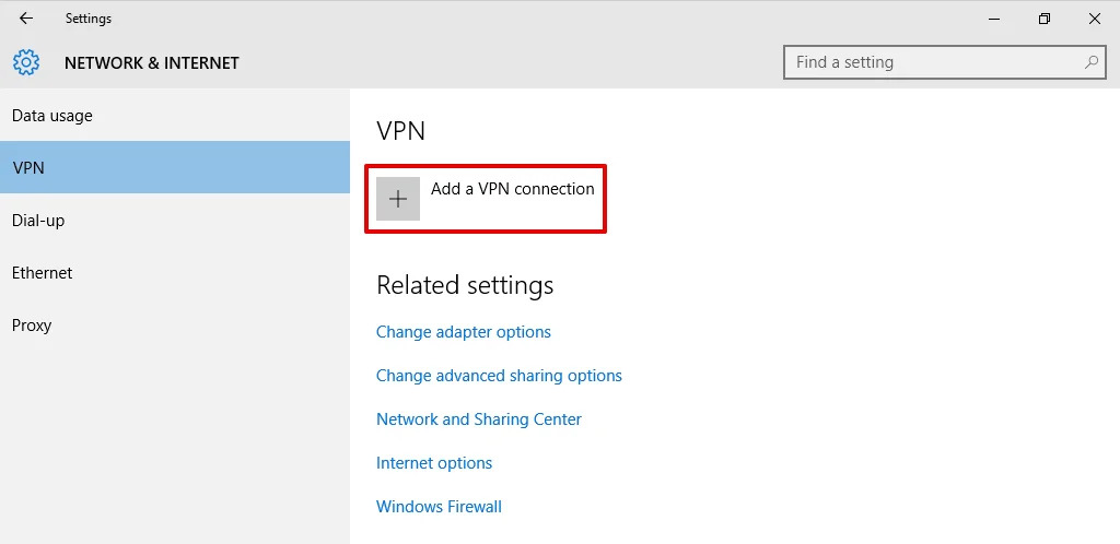 Navigate to Settings > Network & Internet > VPN and click Add a VPN connection.
