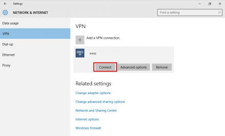 25. Finally, go to your VPN settings under Network & Internet and click on Connect and the VPN connection will be established in few seconds.