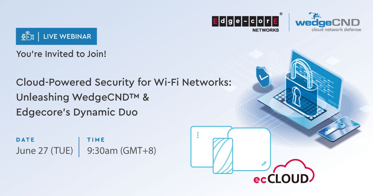 Come learn about the latest advancements in Wi-Fi network security. We are hosting a webinar titled "Cloud-Powered Security for Wi-Fi Networks: Unleashing WedgeCND™ and Edgecore's Dynamic Duo," and we would be honored to have you and your network of customers join us.